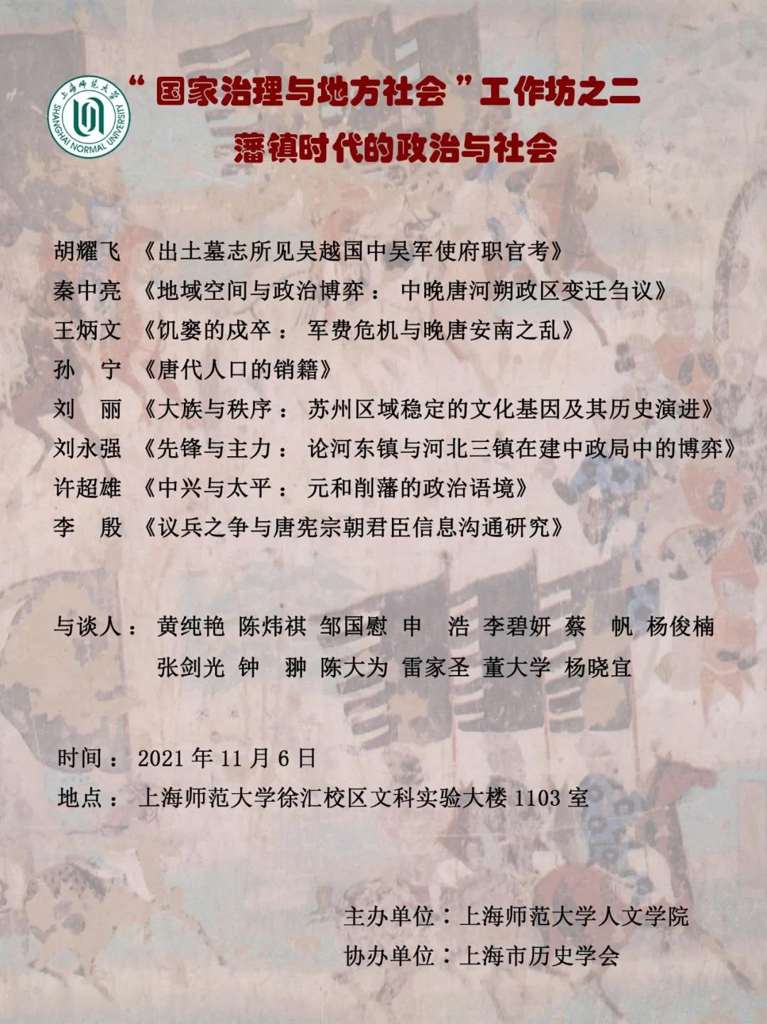 “国家治理与地方社会”工作坊之二 藩镇时代的政治与社会